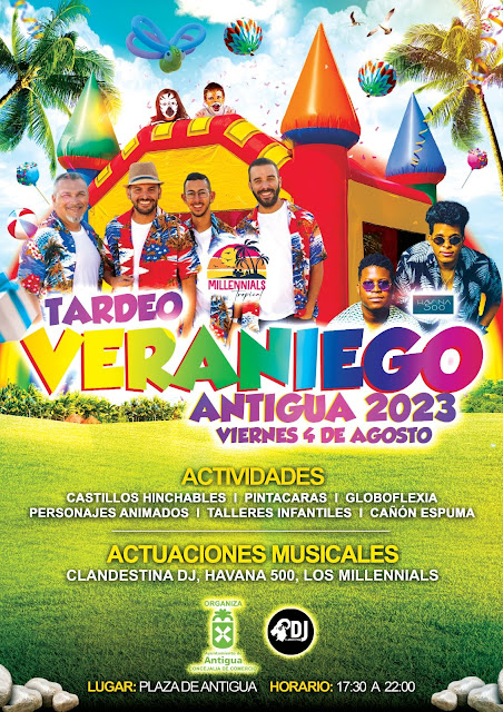 El Municipio de Antigua completa su oferta de eventos, actividades y conciertos de verano en cada localidad durante el verano, organizando una propuesta refrescante en la Plaza de Antigua, que invita a la participación de los más pequeños y pequeñas a primera hora de la tarde, y conciertos al anochecer para disfrute de los que son algo más grandes, afirma el alcalde, Matías Peña García.