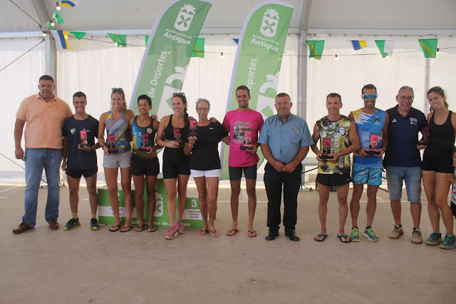 Primer premio en absoluta masculina para José Antonio Hernández Ojeda de Antigua, seguido en segunda posición de Juan Carlos Ojeda Cabrea, y en tercer puesto, Agustín Núñez Pérez, ambos de Gran Canaria. Primer premio en absoluta femenina para Astrid Muñoz Muñoz, de La Oliva, seguida de Judit Henriquez Díaz de Gran Canaria y María Fraile de Puerto del Rosario.