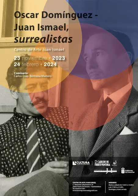 El Centro de Arte Juan Ismael de Fuerteventura acogerá la exposición ‘Oscar Domínguez y Juan Ismael, Surrealistas’ en conmemoración de su 20 aniversario. Esta muestra, comisariada por Carlos Díaz-Bertrana, permanecerá abierta desde el próximo 23 de noviembre hasta el 24 de febrero de 2024 en las instalaciones del Centro de Arte Juan Ismael (CAJI). En horario de martes a sábado de 10:00h a 13:00h y de 17:00h a 21:00h.