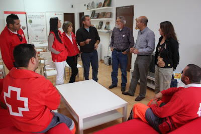 El consejero de Bienestar Social del Cabildo, Víctor Alonso, y el presidente de la Asamblea de Cruz Roja en Fuerteventura, Gerardo Mesa, departieron con los voluntarios que trabajan en el servicio de Teleasistencia Domiciliaria que desarrolla la ONG en la Isla majorera, contando para ello con el apoyo de la institución insular mediante un convenio que cuenta con 109.000 euros de subvención.
