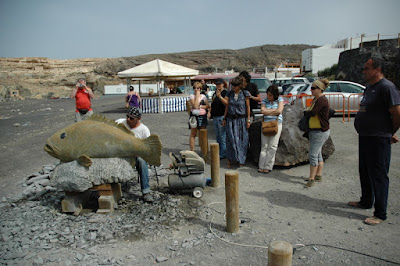 Este año se dio la circunstancia de que, en los aparcamientos de la playa de Ajuy, el majorero Juan Miguel Cubas procedía a esculpir, de cara al público y desde hacía varias semanas, la pieza ‘Carlitos, el mero de Jandía’, obra que finalizó ese mismo sábado, y que realizaba en el marco de una actividad organizada por la concejalía de Cultura del Ayuntamiento de Pájara.