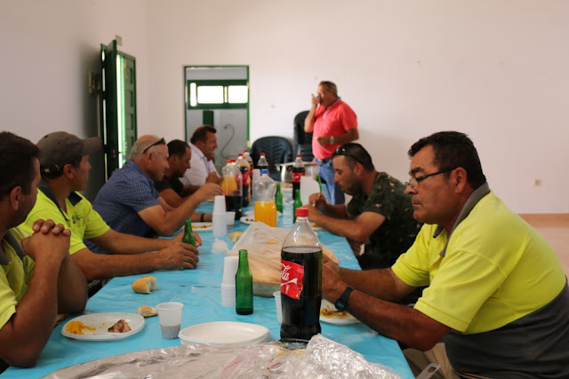 El concejal de Obras y Servicios, Matías Peña, prometió y cumplió, invitando a un almuerzo a los operarios de los consistorios municipales de Pájara y Antigua, por su esfuerzo y compromiso con el monte y desmonte de las estructuras y carpas de la Feria de Agricultura, Ganadería y Pesca y la Feria Insular de Artesanía.