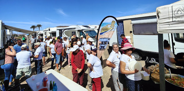 Este sábado noche se dieron cita junto al Pabellón Municipal de Antigua, 62 autocaravanas y más de un centenar de participantes en un Encuentro que reúne amistades de ambas islas, en un ambiente magnífico, donde no falta la música, las partidas de baraja y los calderos de comida para todos los participantes.