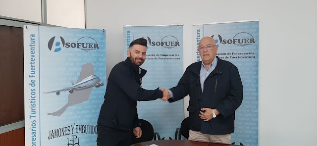 Puerto del Rosario, 14 de enero de 2020.- “Si alguien ha sabido ligar las palabras solidaridad y Fuerteventura, y contribuir a difundir el nombre del destino de forma masiva a través de sus actos solidarios, ese alguien ha sido José Carlos Prieto”. Son palabras de Antonio Hormiga, presidente de Asofuer, en el acto de firma del nombramiento por el que la patronal turística majorera reconoce Embajador Turístico de Fuerteventura al representante de Jamones y Embutidos Josele e Hijos.