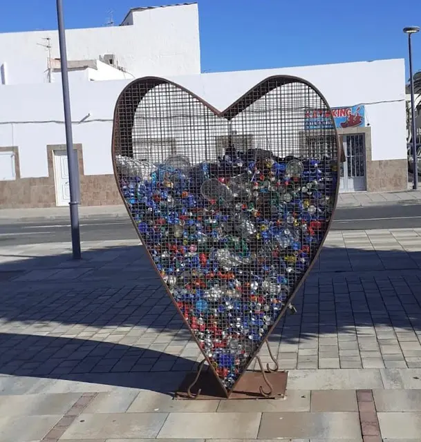 En el marco de esta acción, el Área de Medio Ambiente recolecta y entrega mensualmente numerosos kilogramos de tapones de plástico que la ciudadanía deposita en las jaulas con forma de corazón emplazadas en Morro Jable, Costa Calma, Pájara y La Lajita.