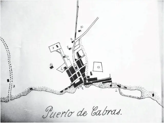 El nacimiento de Puerto de Cabras, finales del siglo XVIII y principios del XIX, deriva de la toponimia “Agua de Cabras”, nombre con que se conocía un lugar de la costa del antiguo Municipio de Tetir donde existían abrevaderos de agua dulce a los que acudían las cabras, próximos al puerto de de desembarque que se denominó Puerto Cabras.