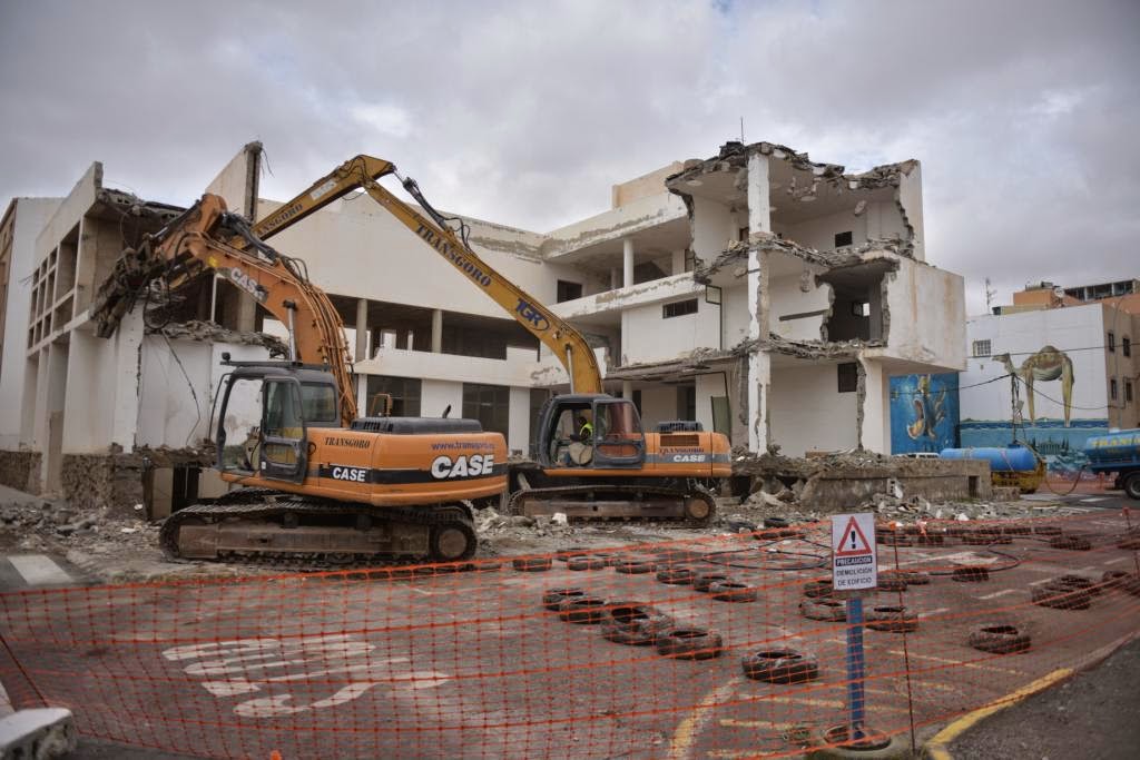 los trabajos de demolición de la antigua Tenencia de Alcaldía de Gran Tarajal.