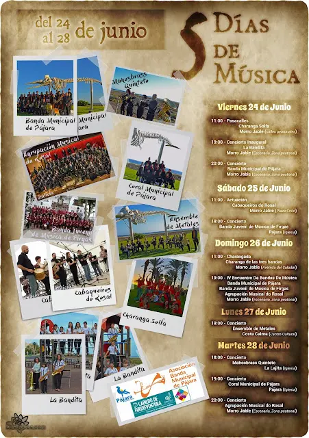 La Banda Juvenil de Música de Firgas y la Agrupación Musical do Rosal, de Galicia, participarán como bandas invitadas en el festival 'Cinco días de Música', que arranca este viernes, 24 de junio, en Morro Jable. La programación se extiende hasta el martes, 27 de junio, con una serie de conciertos en la zona peatonal de dicha localidad, así como en Pájara, Costa Calma y La Lajita.