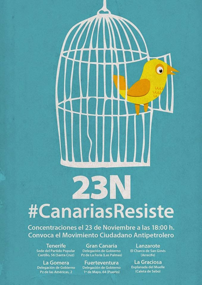 Por todo ello, animan a la participación en las concentraciones que tendrán lugar el próximo ía 23 de noviembre, día en que se cercenó el derecho a votar por nuestro futuro, aunque advierten al Partido Popular de que "haremos campaña para que, cuando sí se pueda votar (en las elecciones), el voto sea por un futuro sin petroleras, que respete los valores naturales de Canarias, los derechos humanos, los derechos democráticos, y la voluntad de nuestro pueblo".