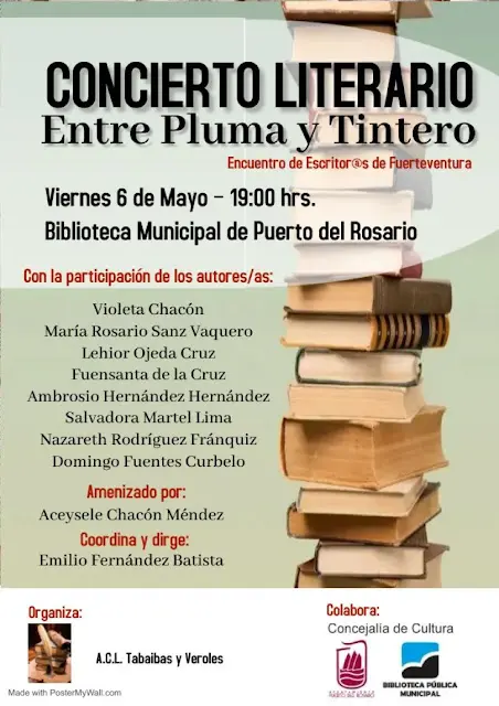 Biblioteca municipal de Puerto del Rosario será protagonista este viernes 6 de Mayo del Concierto Literario ‘Entre Pluma y Tintero’