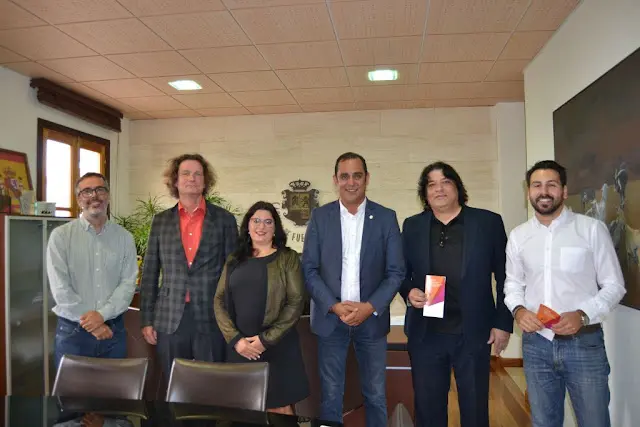 El Presidente del Cabildo de Fuerteventura, Blas Acosta, junto al Consejero de Promoción Económica, Manuel Hernández, y el Director del Proyecto Afrimac, Carlos David Gutiérrez, recibieron esta mañana al Dr. Peyman Ghaffari, Presidente del Proyecto europeo IMAAC, y parte de su equipo directivo: Virginia Sanz