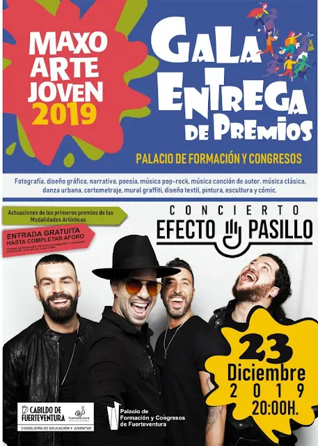 El Cabildo de Fuerteventura, a través de la Consejería de Juventud, invita a asistir a la Gala de entrega de premios MaxoArte Joven 2019 el próximo lunes 23 de diciembre a las 20.00 horas en el Palacio de Formación y Congresos.