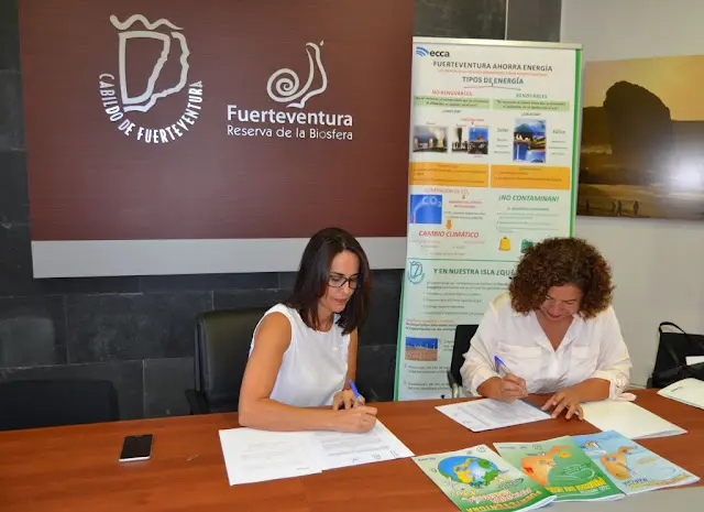El Cabildo de Fuerteventura, a través de su Consejería de Industria, que dirige Lolina Negrín, ha llevado a cabo hoy la firma del convenio con Radio ECCA Fundación Canaria para el desarrollo del proyecto "Promoción de energías renovables en los Centros Educativos de la isla de Fuerteventura para el año 2019 y 2020".