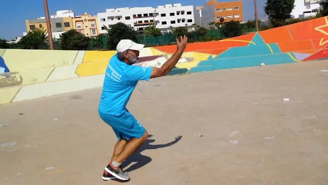 contrario, antes de dar dos botes en el suelo y golpeándola con la palma de la