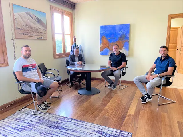 El presidente del Cabildo de Fuerteventura, Blas Acosta, el consejero de Deportes, Alejandro Jorge, y el concejal de Deportes del Ayuntamiento de La Oliva, Jerónimo Lozano, se reunieron con directiva del equipo y su entrenador, Marcelino Morales, para abordar esta problemática que afecta al club deportivo. Ambas corporaciones animan a este club a llegar hasta el final en su lucha por ascender de categoría.