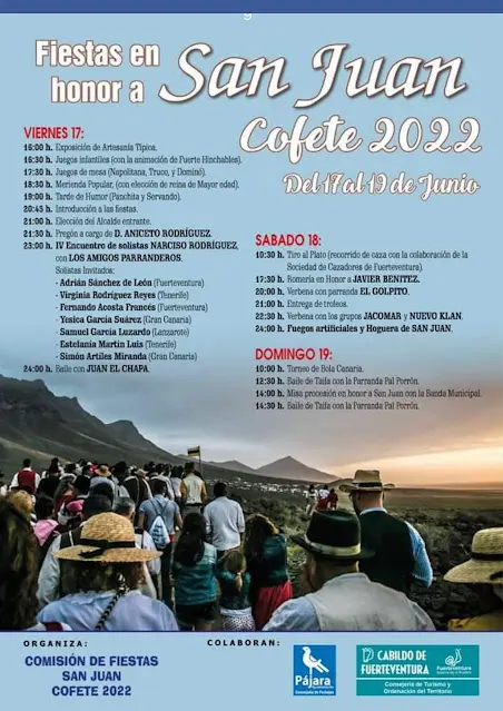 El Cabildo de Fuerteventura, que preside Sergio Lloret López, ha querido enviar los mejores deseos para un magnífico desarrollo de las Fiestas Patronales de Cofete 2022, en honor a San Juan, que arrancan hoy, viernes 17 de junio, a partir de las 16 horas, gracias al apoyo y la colaboración mantenida entre la Corporación Insular, el Ayuntamiento de Pájara y las asociaciones de vecinos y Comisión de Fiestas de Cofete, que han trabajado conjuntamente para que estas fiestas se desarrollen con las mayores garantías de seguridad y confortabilidad.