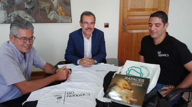 presidente del Cabildo de Fuerteventura, Marcial Morales, y el consejero de Innovación, Rafael Pérez, felicitan al representante de RB