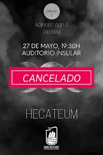 El Ayuntamiento de Puerto del Rosario, a través de la Concejalía de Cultura que dirige Juan Manuel Verdugo, comunica que la obra de teatro ‘Hecateum’ que iba a celebrarse este viernes, 27 de mayo, a las 19.30 horas, en el Auditorio de Puerto del Rosario, queda cancelada por razones de salud.