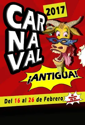 El Cartel de los Carnavales de Antigua se identifica con un cartel comercial de rebajas, en alusión a la alegoría que este año protagoniza el Carnaval, El Mundo de la Publicidad, y añade el concejal de Festejos, Suso Montañez, es llamativo, directo y claro, representando la cara feliz de una cabra disfrazada sobre un fondo rojo y junto a las letras en grande y mayúsculas de Carnaval 2017 ¡Antigua!
