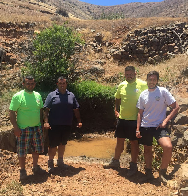 Voluntarios de la Sociedad de Cazadores de Antigua Halcones Peregrinos han llevado a cabo, con la colaboración de las concejalías de Agricultura, Ganadería, Pesca y Deportes del Ayuntamiento de Antigua, la limpieza y arreglo de la Fuente natural del Janinchón, en las cercanías de Antigua.
