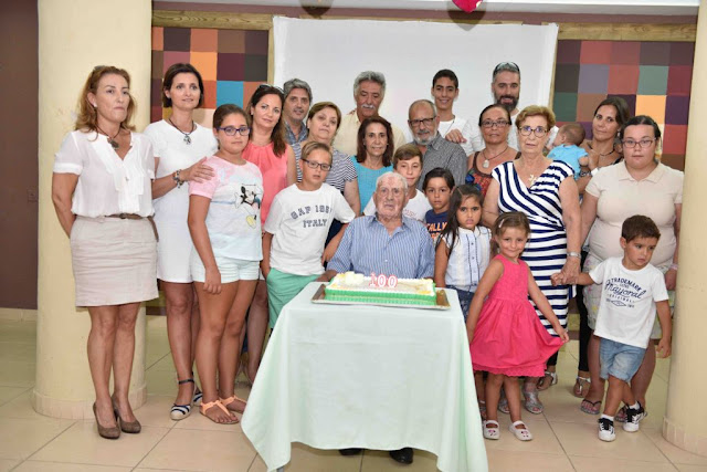 oportunidad de soplar las velas de sus 100 años de edad rodeado de su familia.