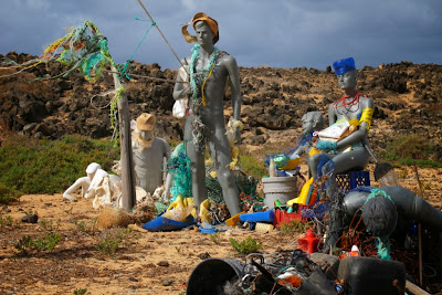 de la Caleta, separando la basura encontrada, y con la que el artista