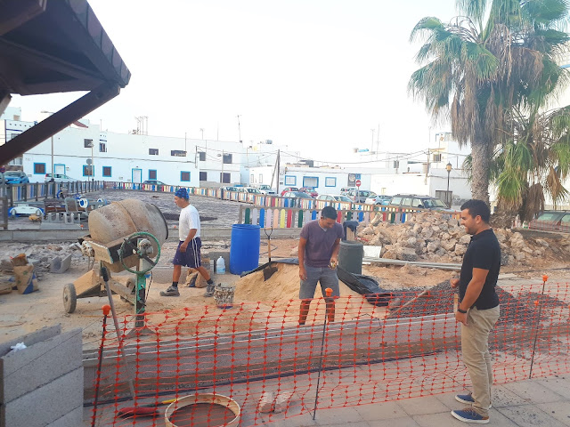 Las obras en el parque infantil de El Cotillo conllevan una renovación completa de sus instalaciones, "con la instalación de suelo acolchado continuo, más limpio y duradero que las losetas que había hasta ahora, con nuevos juegos distribuidos en el espacio por edades, y la instalación de mobiliario como una pérgola, bancos y alumbrado para los padres", explicó el concejal Juan José Rodríguez.