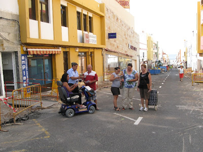Durante la visita realizada a las obras de rehabilitación de la zona comercial de Morro Jable, Faustino Cabrera y Candelaria Umpiérrez conversaron en un momento dado con un grupo de personas en situación de movilidad reducida que se encontraban recorriendo la zona. Estas personas destacaron las buenas condiciones de accesibilidad con que cuentan las obras, dado que "a pesar de encontrarse los pavimentos levantados, la empresa ha instalado una serie de pasarelas rígidas con pasamanos que están permitiendo reducir al mínimo las molestias a la hora de desplazarse por la calle".