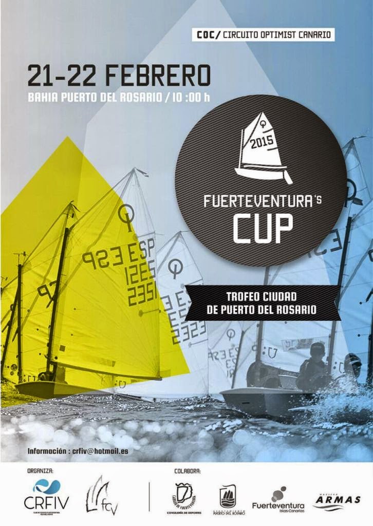 Se celebrará en la Bahia de Puerto del Rosario durante los dias 21 y 22 de Febrero del presente año, la Copa de Canarias De Clase Optimist-Fuerteventura`S Cup-Trofeo Ciudad De Puerto Del Rosario valedero para el Campeonato de España valedero para la Copa de España 2015.Participacion aproximada 130 regatistas.