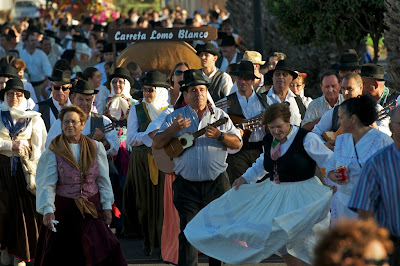 Durante el trayecto, las parrandas y los grupos folclóricos animaron a todos los asistentes del municipio y de otros puntos de la isla, en una nueva muestra de tipismo, tradición y exaltación de la esencia de nuestra tierra, de fidelidad al pasado. Las carretas arrastradas por burros y decoradas para la ocasión dieron colorido al recorrido, donde tampoco faltó el gofio amasado en el zurrón y el buen vino del país.