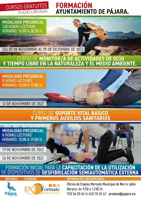El Ayuntamiento de Pájara, a través de la Concejalía de Empleo y Desarrollo Local que coordina Rodrigo Berdullas, en colaboración con ENformate, oferta tres cursos gratuitos para fomentar la formación y la inserción laboral en el municipio.