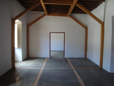una pequeña iglesia y sacristía; una segunda sala rectangular en la que ahora