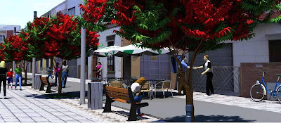 Las vías se dotarán de un mobiliario urbano de calidad, moderno y acorde con el entorno en el que se implantan. Se utilizarán dos tipos de luminarias dependiendo del tipo de vía que iluminen. También se plantarán flamboyanes en alcorques, y el mobiliario urbano será en su totalidad de material anti vandálico, resistente a oxidaciones y de fácil reposición. Esto hará más agradable la circulación peatonal y permitirá llevar a cabo actividades comerciales, complementarias a las de los comercios, al aire libre como terrazas o quioscos, hoy prácticamente inexistentes.