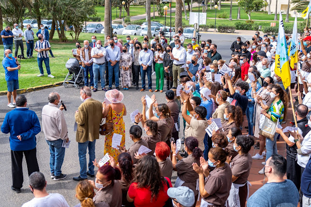 El Cabildo de Fuerteventura respaldó hoy las protestas de las trabajadoras y trabajadores de los hoteles Oliva Beach y Tres Islas contra la temida caducidad del expediente de concesión a la cadena Riu, propietaria de ambos hoteles situados en Corralejo, en el término municipal de La Oliva.