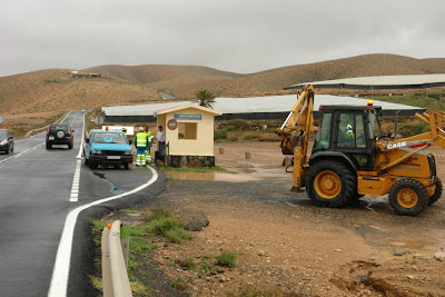 Las actuaciones más relevantes fueron debidas a la lluvia, que obligaron a rescatar a los ocupantes de dos vehículos que quedaron levemente desplazados de la carretera en los términos municipales de Pájara y Tuineje. Los corrimientos de tierra causaron el derrumbe de la carretera entre Pájara y Ajui al paso del barranco, quedando interrumpido el acceso a esta última localidad. Los técnicos y la maquinaria de la Oficina Técnica del Cabildo se encuentran desde primera hora en la zona para habilitar un paso temporal que permita solucionar la situación con la mayor brevedad posible en las máximas condiciones de seguridad.