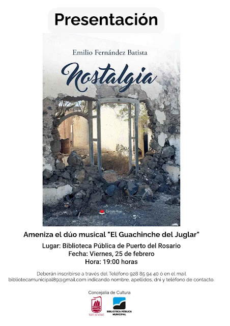 El escritor Emilio Fernández presenta el 25 de Febrero en Puerto del Rosario su séptimo libro titulado ‘Nostalgia’