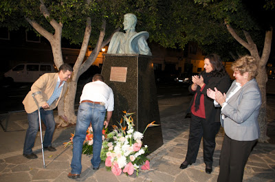 Manuel Velázquez recibió un nuevo homenaje con la tradicional ofrenda floral a los pies del busto que reproduce su efigie en la plaza de Tiscamanita, su tierra natal, primer acto de la tarde que contó con la presencia de Manuel Velázquez Millares, nieto del abogado y político majorero, la consejera de Cultura y Patrimonio Histórico del Cabildo, Genara Ruiz, y el acalde de Tuineje, Salvador Delgado.