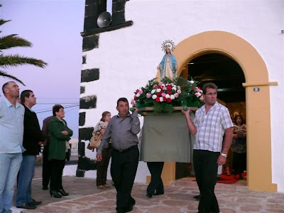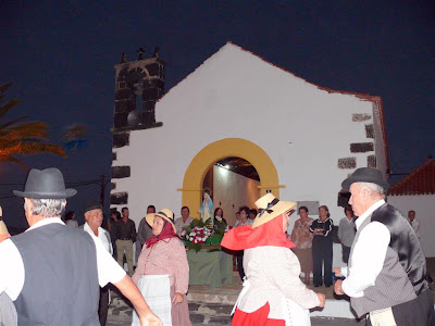 Finalizada la función religiosa, los fieles sacaron en procesión a la virgen por la plaza de la iglesia, y la colocaron a las puertas del templo para que recibiera el cariño de la gente. Así, todas las personas que integran la Asociación Fuerteventura Norte cantaron y bailaron folías, malagueñas e isas en su honor.