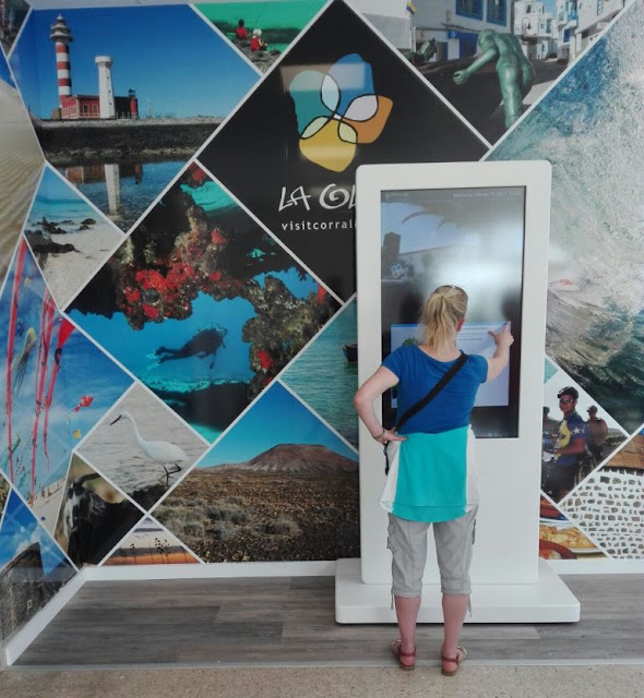 museos, submarinismo, festival de cometas…“Desde la pantalla del ‘totem’ podemos acceder a toda la oferta turística de La Oliva, la misma que ofrecemos en la oficinas de turismo”, señaló Rosa Fernández. Entre los lugares de interés podemos señalar la isla de Lobos, el apartado de senderismo, los vuelos, gastronomía, o la agenda anual de todos los eventos culturales, deportivos y de ocio programados en el norte de la isla.