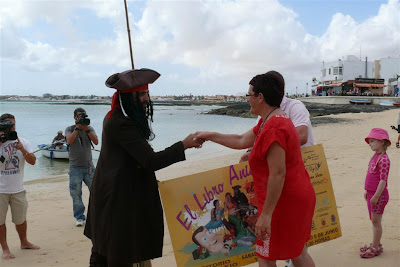 El pirata Jack Sparrow llegó a las playas del Muelle Chico de Corralejo para traer buenas noticias: ‘El libro animado’, el primer musical ideado, dirigido y producido por profesionales de Fuerteventura llega al Auditorio de Corralejo los próximos 4 y 5 de junio. Como por causalidad, allí le esperaban la Sirenita y el cangrejo Sebastián.