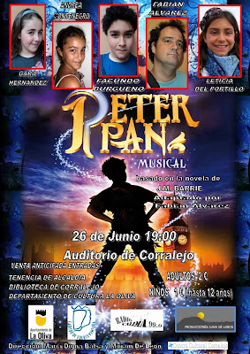 Esa historia es la de Peter Pan, interpretada y cantada por 18 niños de 8 a 16 años, que integran el grupo de teatro infantil del centro cultural de Corralejo. Entre ellos Gara Hernández, Andrea Montenegro, Facundo Burgueño, Fabián Alvárez y Leticia del Portillo