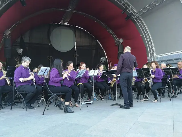escenario, desde las 19:30 horas, de la actuación de la banda de la Escuela