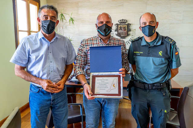 El presidente del Cabildo, Sergio Lloret López, ha recibido hoy miércoles en visita institucional al capitán jefe de la Guardia Civil en Fuerteventura, Pedro Peinado, con quien ha departido unos minutos y agradecido la entrega de una placa con la que la Benemérita quiere agradecer al presidente y a la Institución insular su colaboración con el Cuerpo de la Guardia Civil de Fuerteventura.