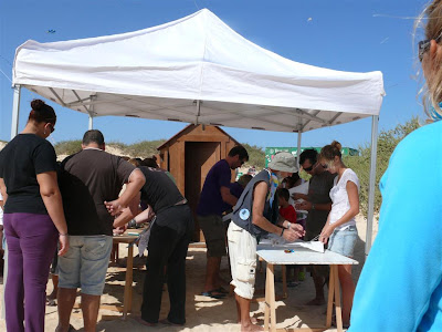 El Ayuntamiento de La Oliva instaló una caseta en la que el cometista Claudio Azzeli y un equipo municipal de monitores enseñaran a niños y grandes, primero, cómo se monta una cometa de cola y, segundo, la clave para echarla a volar.