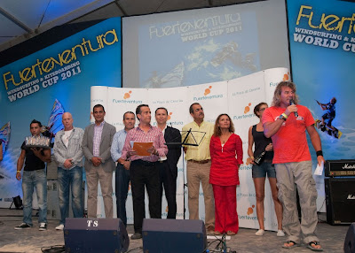 El XXVI Mundial de Fuerteventura de Windsurfing y Kiteborading 2011 vivió en la noche del viernes 22 de julio el acto de inauguración oficial, que reunió a numeroso público. La ‘puesta de largo’ contó con la presencia de autoridades, organizadores y los competidores que en la mañana del sábado empezaron a disputar las primeras mangas de Freestyle en la modalidad de windsurfing.