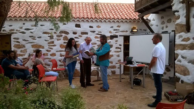 Durante la presentación no faltaron las sorpresas como el sorteo de dos libros firmados por el autor y la entrega del Premio al lector con más edad que recayó en D. José Rodríguez, más conocido como Pepito y que ejerció como Juez de Paz en el Municipio. Con emoción el homenajeado recogió una placa honorífica de manos del concejal de Cultura del Ayuntamiento de Antigua, Mario Jordán, además del regalo aportado por el escritor Castellano, entregándole su libro firmado. Rodríguez, acompañado de familiares y amigos agradeció los presentes, y afirmó, el mejor regalo es este momento que me ofrecéis tan bonito, precisamente el día de mi cumpleaños.