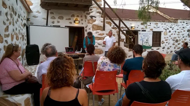 En el ambiente acogedor que ofrece el patio de la tradicional casa canaria El Portón, actual Biblioteca Municipal de Antigua se celebró este martes por la tarde la presentación del libro Jandía , conversaciones entre sal y brumas, a cargo de su autor, Domingo Castellano, que realizó lecturas de varias partes del texto, comentándolas con los asistentes.
