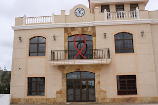 Los edificios públicos del municipio enarbolan un gran lazo rojo en consonancia con el Día mundial de la lucha contra el SIDA que se celebra hoy miércoles 1 de diciembre.