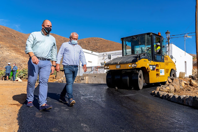 El presidente del Cabildo de Fuerteventura y responsable del Área Insular de Infraestructuras, Planeamiento, Carreteras y Ordenación del Territorio, Sergio Lloret López, ha visitado hoy jueves junto con el alcalde de Betancuria, Marcelino Cerdeña, las obras de asfaltado que se están realizando en distintas calles de la localidad de Vega del Río Palma. Estos trabajos están incluidos en el Plan Insular de Asfaltados Municipales y son financiados con cargo al Fondo de Desarrollo de Canarias (FDCAN).