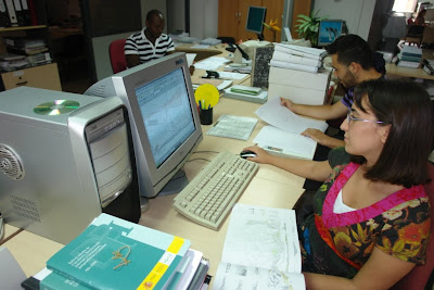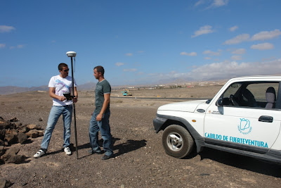 Dos de ellos realizan el estudio topográfico de la carretera de Pozo Negro - Gran Tarajal, mientras que el resto trabaja en diferentes proyectos de la Oficina Técnica como el diseño de un puente de madera para Betancuria o la realización de un inventario sobre las infraestructuras de la Isla